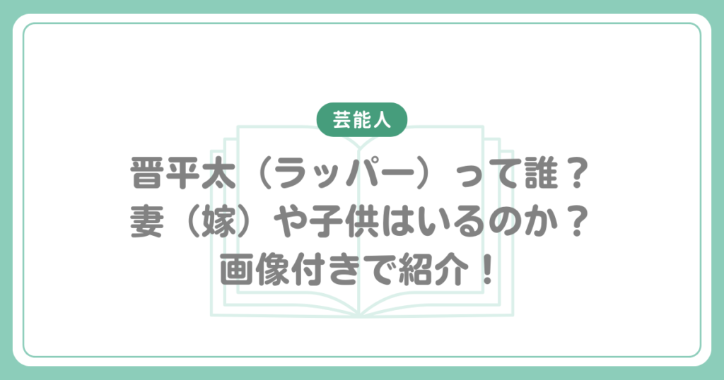 晋平太(ラッパー)って誰?妻(嫁)や子供はいるのか?画像付きで紹介!