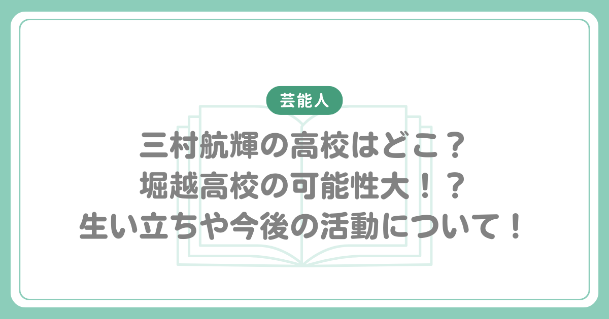 三村航輝さんの高校については、現在公式な情報は公表されていません。